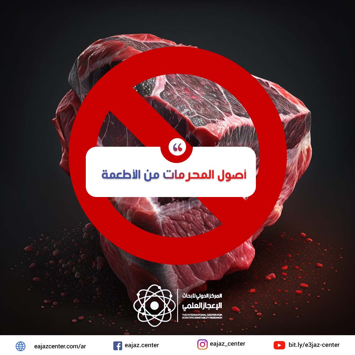 أولا- المحرمات من الأطعمة لعلة ذاتية (على التأبيد) من القرآن الكريم: الميتة ، الدم ، لحم الخنزير ، لحوم البشر، ما أهل لعير الله به وأدلته: (إِنَّمَا حَرَّمَ عَلَيْكُمُ الْمَيْتَةَ وَالدَّمَ وَلَحْمَ الْخِنْزِيرِ وَمَا أُهِلَّ بِهِ لِغَيْرِ اللَّهِ فَمَنِ اضْطُرَّ غَيْرَ بَاغٍ وَلا عَادٍ فَلا إِثْمَ عَلَيْهِ إِنَّ اللَّهَ غَفُورٌ رَحِيمٌ (173) البقرة ويستثنى من ذلك المضطر خشية الموت ، (حُرِّمَتْ عَلَيْكُمُ الْمَيْتَةُ وَالدَّمُ وَلَحْمُ الْخِنْزِيرِ وَمَا أُهِلَّ لِغَيْرِ اللَّهِ بِهِ .. (3) سورة المائدة ، (قلْ لا أَجِدُ فِي مَا أُوحِيَ إِلَيَّ مُحَرَّمًا عَلَى طَاعِمٍ يَطْعَمُهُ إِلاَّ أَنْ يَكُونَ مَيْتَةً أَوْ دَمًا مَسْفُوحًا أَوْ لَحْمَ خِنْزِيرٍ فَإِنَّهُ رِجْسٌ أَوْ فِسْقًا أُهِلَّ لِغَيْرِ اللَّهِ بِهِ (145) سورة الأنعام ، (إِنَّمَا حَرَّمَ عَلَيْكُمُ الْمَيْتَةَ وَالدَّمَ وَلَحْمَ الْخِنْزِيرِ وَمَا أُهِلَّ لِغَيْرِ اللَّهِ بِهِ (115) سورة النحل. ويستثنى من ذلك المضطر خشية الموت (فَمَنِ اضْطُرَّ غَيْرَ بَاغٍ وَلا عَادٍ فَلا إِثْمَ عَلَيْهِ إِنَّ اللَّهَ غَفُورٌ رَحِيمٌ (173) البقرة