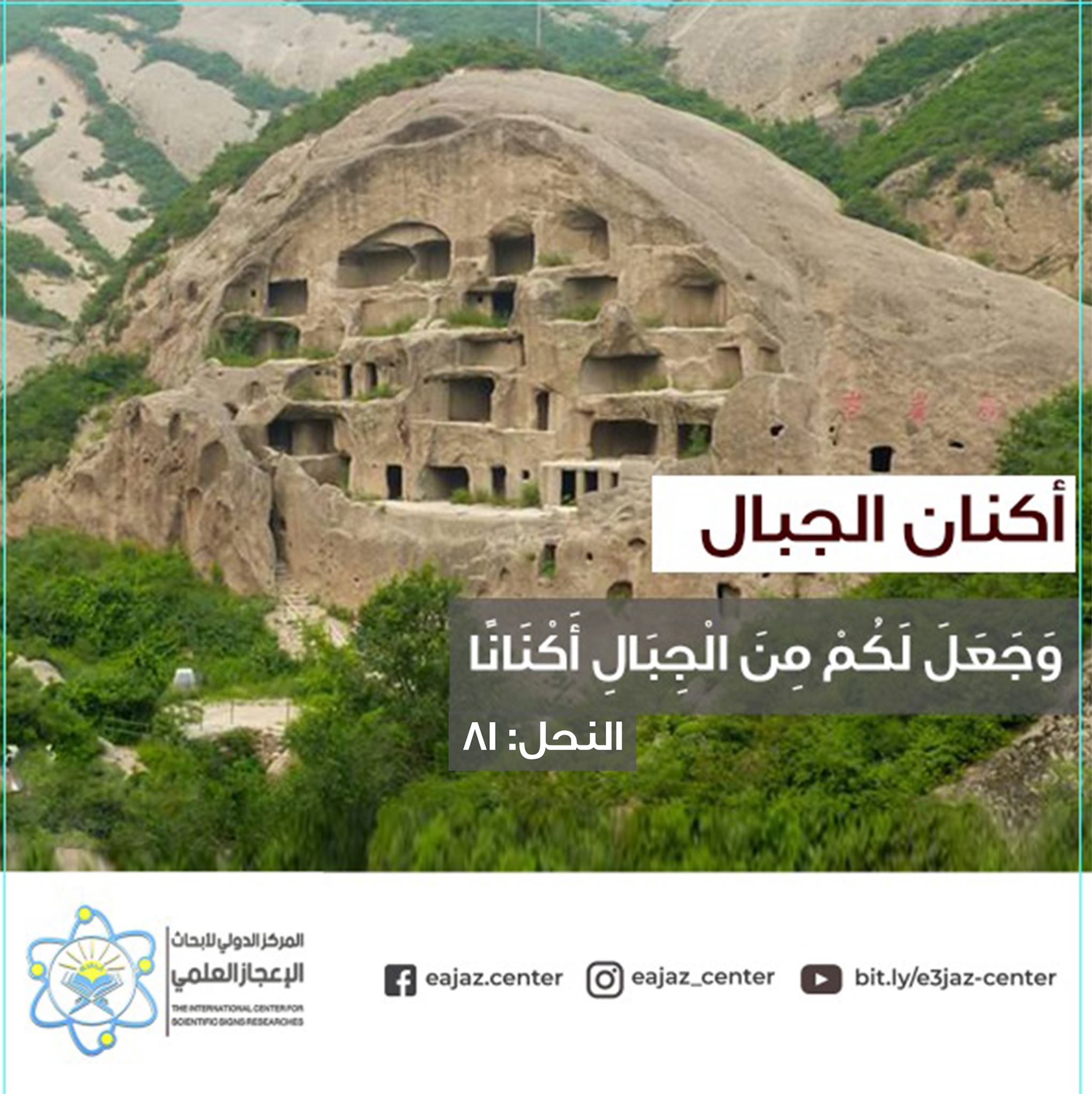 ويتضح ذلك من أن درجة حرارة هذه الأكنان الجبلية تكون بصفة عامة أقل فى فصل الصيف وأكثر فى فصل الشتاء، من نظيراتها مقارنة بحرارة الجو الخارجية، وذلك حسب المنطقة التى تقع بها تلك الجبال، من هنا كانت اشارة الآية الكريمة الى "أكنان الجبال" اشارة معجزة.جعل الله للبشر من الجبال أكنانا ومواضع للسكنى، سوآء أكانت طبيعية كالكهوف والغيران أو التى ينحتها الانسان.
