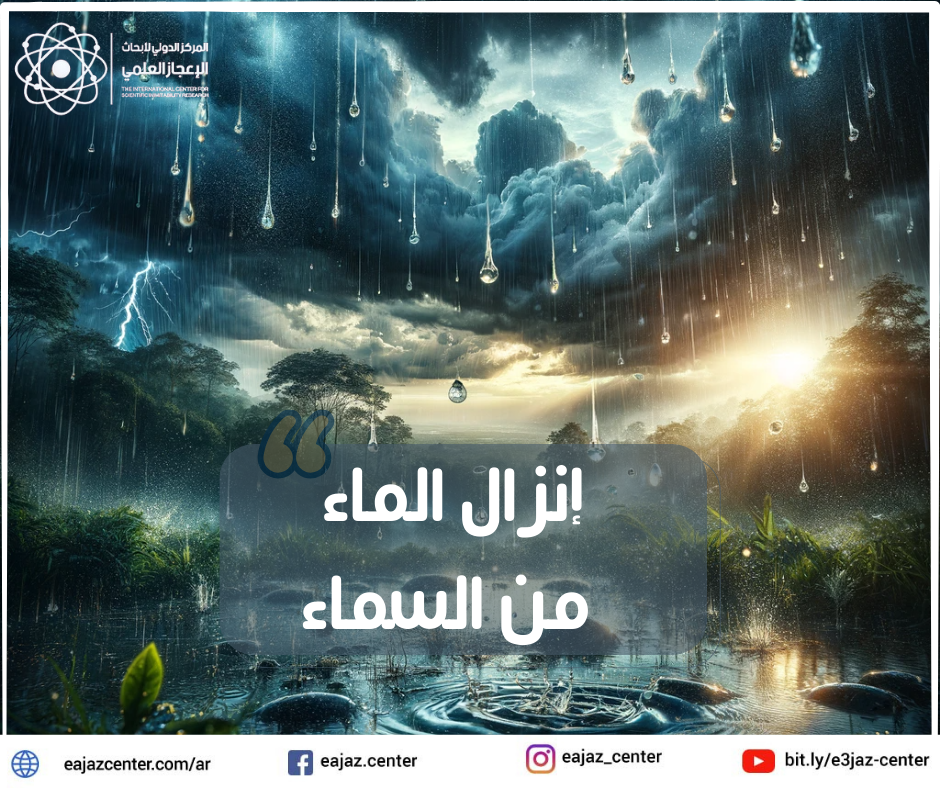 بيان ما جاء في قوله تعالي"وأنزلنا من السماء ماءً مباركاً فأنبتنا به جناتِ وحب الحصيد"الإفادة: - التفسير العلمي والدلالة النصية يعتبر إنزال الماء من السماء من الشواهد اليقينية علي القدرة الإلهية لله تعالي وذلك بعد مرور ماء السماء بعدة مراحل فيزيائية وكيميائية توصل إليها العلم الحديث ليفهم الناس أن هذا ليس عبثاً وليس من الأمور المعتادة حيث ينزل من السماء ماءَ مياركاً ينبت به الله الزرع والجنات وحب الحصيد ومن المعلوم أن ماء المطر ماءُ طيب مبارك له من الخصائص الفيزيائية والتكوينية التي لم توجد في مياه البحار حيث جاء القرآن بذكر 23 نوعاً من المياه المختلفة ومنها الماء المبارك الذي يحيي الأرض وينبت الزرع وينشر الخير قال تعالى : (ونزلنا من السماءِ ماءً مباركا فأنبتنا به جناتٍ وحب الحصيد) (ق 9).