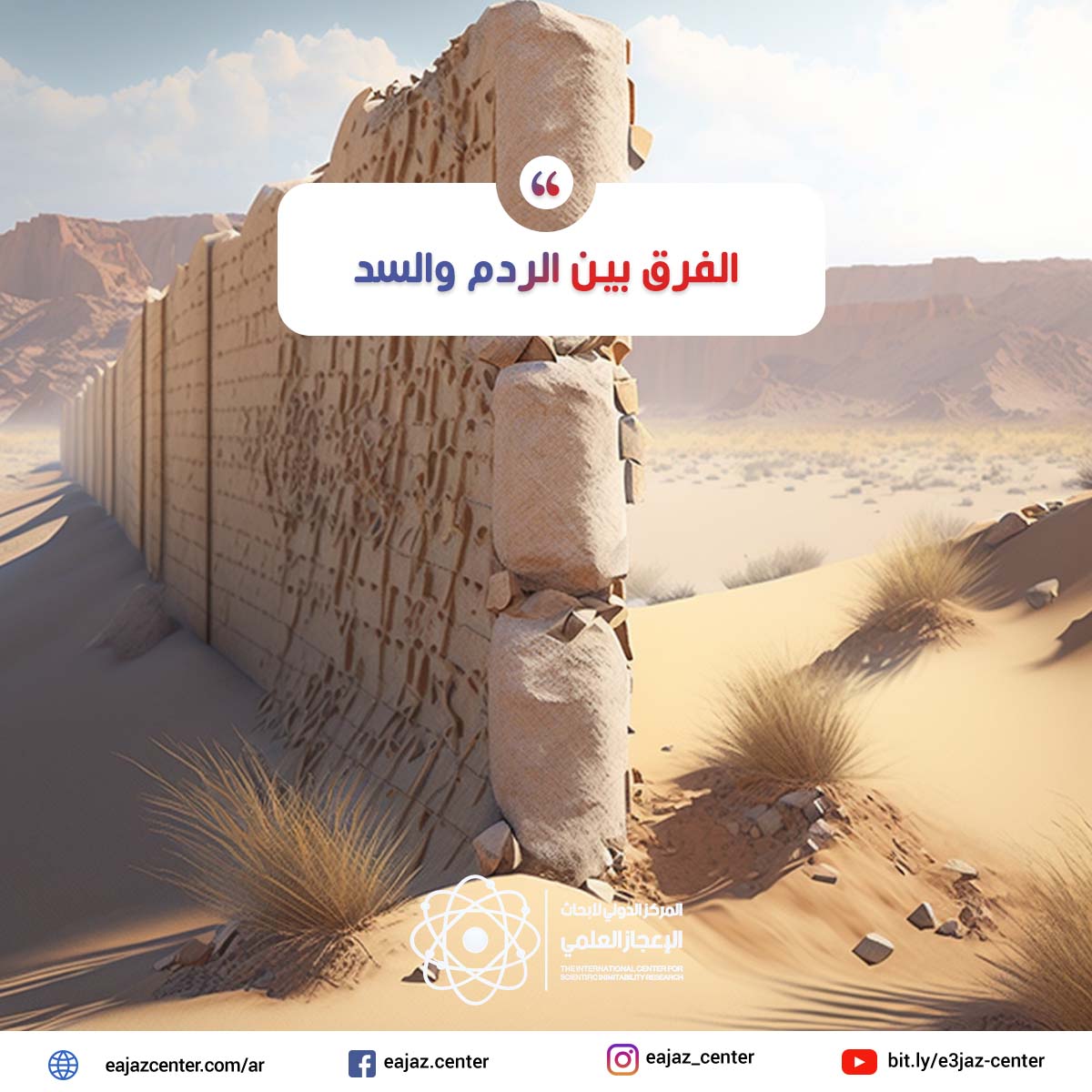 السد أعم فى المعنى من الردم، فكلمة السد استخدمت فى القرآن الكريم بالمعنى المادى وهو الحاجز، ويستنبط ذلك من