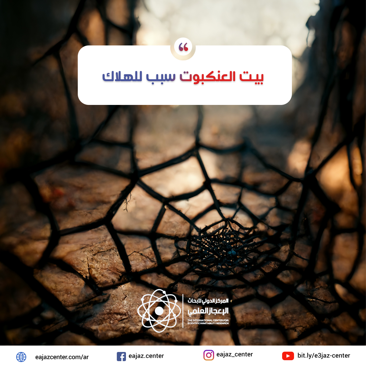 "مثَلُ الَّذِينَ اتَّخَذُوا مِن دُونِ اللَّهِ أَوْلِيَاءَ كَمَثَلِ الْعَنكَبُوتِ اتَّخَذَتْ بَيْتًا ۖ وَإِنَّ أَوْهَنَ الْبُيُوتِ لَبَيْتُ الْعَنكَبُوتِ ۖ لَوْ كَانُوا يَعْلَمُونَ"