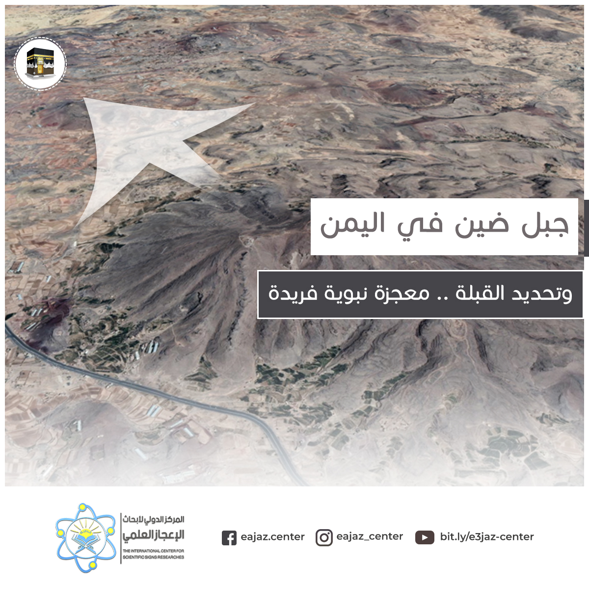 قبلة مسجد صنعاء وقمة جبل ضين والكعبة المشرفة تقع كلها على خط مستقيم واحد.