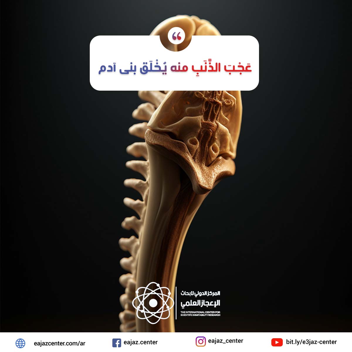عجب الذنب : يكون فى عَظمُ رَأسُ العُصْعص ، ويقالُ له: (عَجْم) بالمِيم، وهو أوَّلُ ما يُخلَقُ مِن الآدميِّ ، وهو الَّذي يَبقى مِنه ليُعادَ تَركيبُ الخَلقِ عليه يومَ القيامةِ. أما علماء الأجنة والبيولوجيا الحيوية فيرون أنه بقايا خلايا الخيط الأولى وهى خلايا كاملة القدرة والتى بدأ الجنين فى النشأة والتكوين منها.