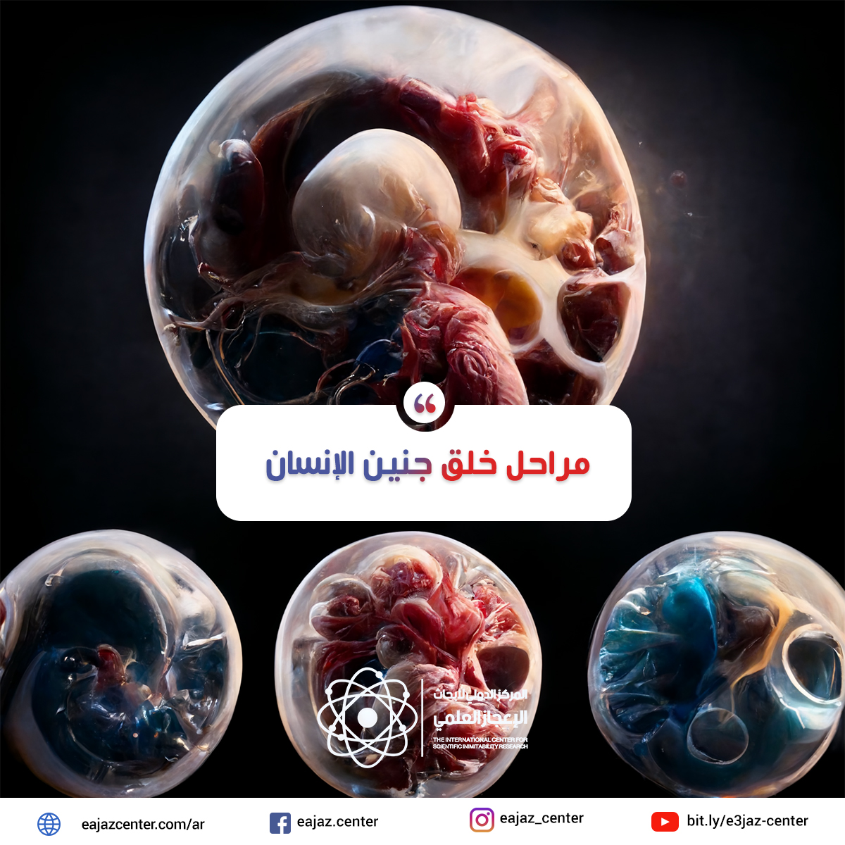 يمر خلق جنين الإنسان بثلاث مراحل أساسية ، الأولى بدايتها النطفة الأمشاج ونهايتها العلقة