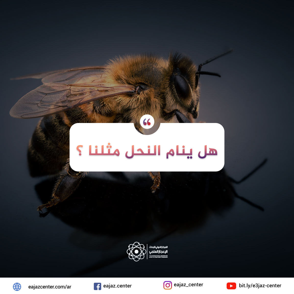 إن البشر والنحل، على رغم ما بينهما من اختلافات جلية للعيان، يشتركون في بعض الخيوط التي تمثل نسيج الحياة. فكلانا نوعان اجتماعيان. وفي حين يتواصل البشر بالكلام والكتابة، يتواصل النحل مع بعضه بعضًا بلغة التراقص، ويهزّ جسمه يمينًا ويسارًا لفترات محددة وبزوايا تشير إلى أفضل المناطق للعثور على الرحيق أو حبوب اللقاح خارج خلية النحل المفعمة بالنشاط والحيوية. لكن لا تقتصر حياة النحل على العمل الشاق فحسب، بل على النحل أن يخلد للنوم، مثله مثل الإنسان. ومثلما يوجد لدى البشر إيقاع يومي ينظم ساعات النوم والاستيقاظ، ينام النحل أيضًا من خمس إلى ثماني ساعات. ويحصل النحل الباحث عن الطعام على ساعات النوم وفقًا لدورات يتعاقب فيها الليل والنهار، إذ يخلد إلى الراحة ليلًا، حين يحول الظلام دون خروجه للبحث عن حبوب اللقاح والرحيق . إذا كان الهدف الرئيسي لخلية النحل هو إنتاج العسل بغزارة، فلمَ يهدر جزء كبير من النحل، حسبما يبدو لنا، ما يصل إلى ثلث اليوم نائمًا؟ وما هي مزايا النوم بالنسبة للنحل؟ . على مدار السنوات القليلة الماضية، بدأ عدد قليل من العلماء يميطون اللثام عن أسباب احتياج النحل للراحة، وقد أضافت نتائج أبحاثهم خيوطًا مشتركة أخرى بين النحل والبشر يتقاسمونها في نسيج الحياة. منذ أن درس أرسطو النظام الملكي في مستعمرة النحل في القرن الثالث قبل الميلاد، مازالت تتعاقب أجيال من العلماء المتفانين في عملهم على دراسة النحل من فصيلة، النحل الغربي، وتمكن كلٌ منهم من اكتشاف شيئًا جديدًا تمامًا.