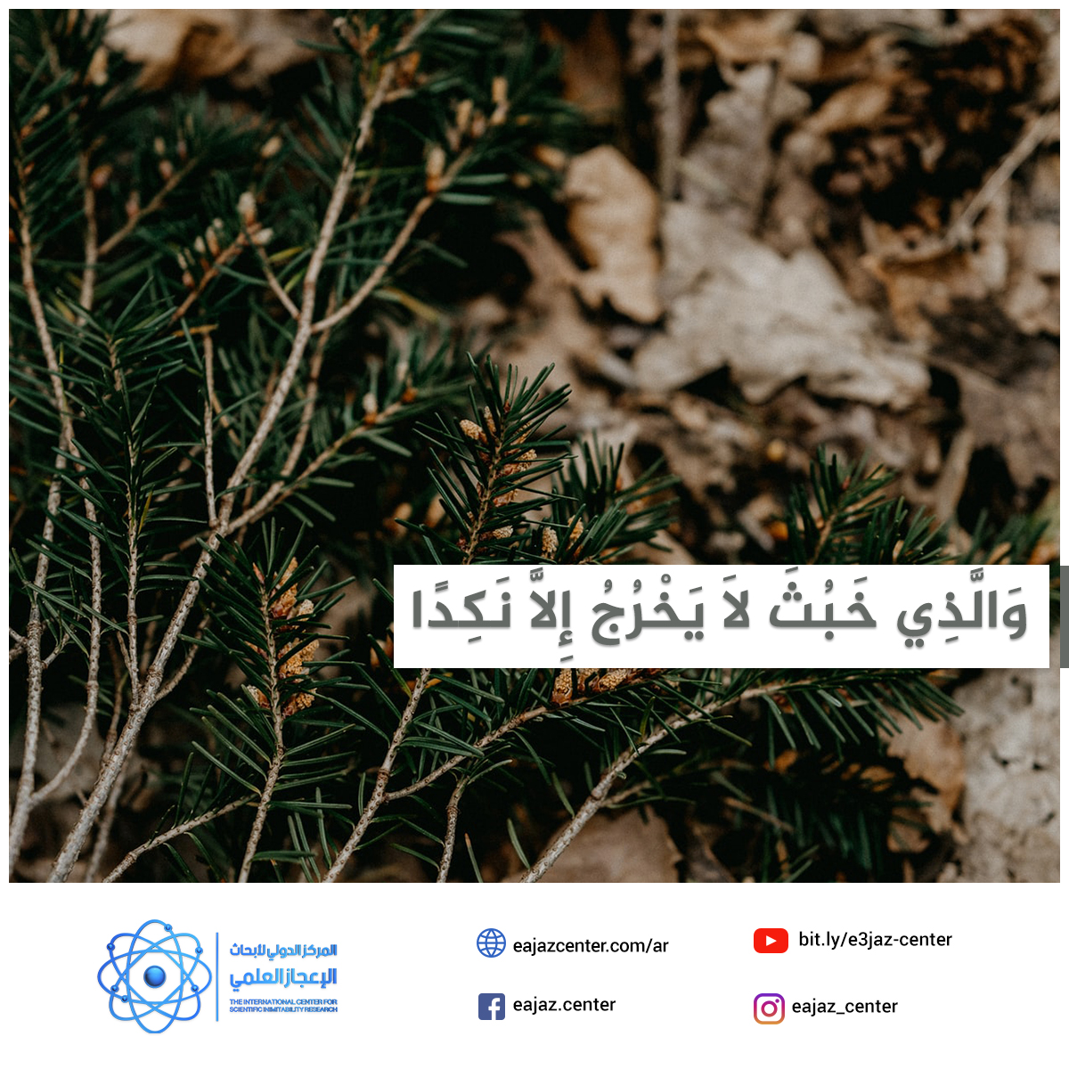 يُعرّف علماء البيئة خبث الوسط البيئي، بأنه: تغيير في الخواص الطبيعية والكيميائية والبيولوجية المحيطة بالإنسان – من ماء وتربة وهواء – و الذي قد يسبّب أضرارا لحياة الإنسان أو غيره من الكائنات الحية الأخرى. وتشير هذه الآية الكريمة بإعجاز علمي بالغ الدقة عن أهم أسباب تحول البلد الطيب بما فيه من حياة طيبة ونباتات طيبة، إلى بلد خبيث، ينتشر فيه الملوثات المختلفة التي تجعل النباتات نخرج نكدة بما تحوية من عناصر ثقيلة سامة ومبيدات حشرية تمتصها النباتات فتكون نكدة على من يأكلها وتسبب له الأمراض. لقد وصلنا إلى مرحلة أصبحنا فيها أحوج ما نكون إلى العودة الصادقة والمخلصة والملتزمة بتعاليم الإسلام وترسيخ الوعي البيئي الإسلامي ومراعاة الوسط البيئي. لقد طلب الإسلام من الإنسان أن يتعامل مع البيئة من منطلق أنها ملكية عامة يجب المحافظة، قال تعالى: «وَلاَ تُفْسِدُواْ فِي الأَرْضِ بَعْدَ إِصْلاَحِهَا ذَلِكُمْ خَيْرٌ لَّكُمْ إِن كُنتُم مُّؤْمِنِينَ». ولتبقى هذه الومضة القرآنية الباهرة شهادة صدق بأن القرآن الكريم هو كلام الله عز وجل، وأن محمدا ﷺ كان موصولا بالوحي وأن القرآن الكريم وهو معجزته الخالدة إلى قيام الساعة.