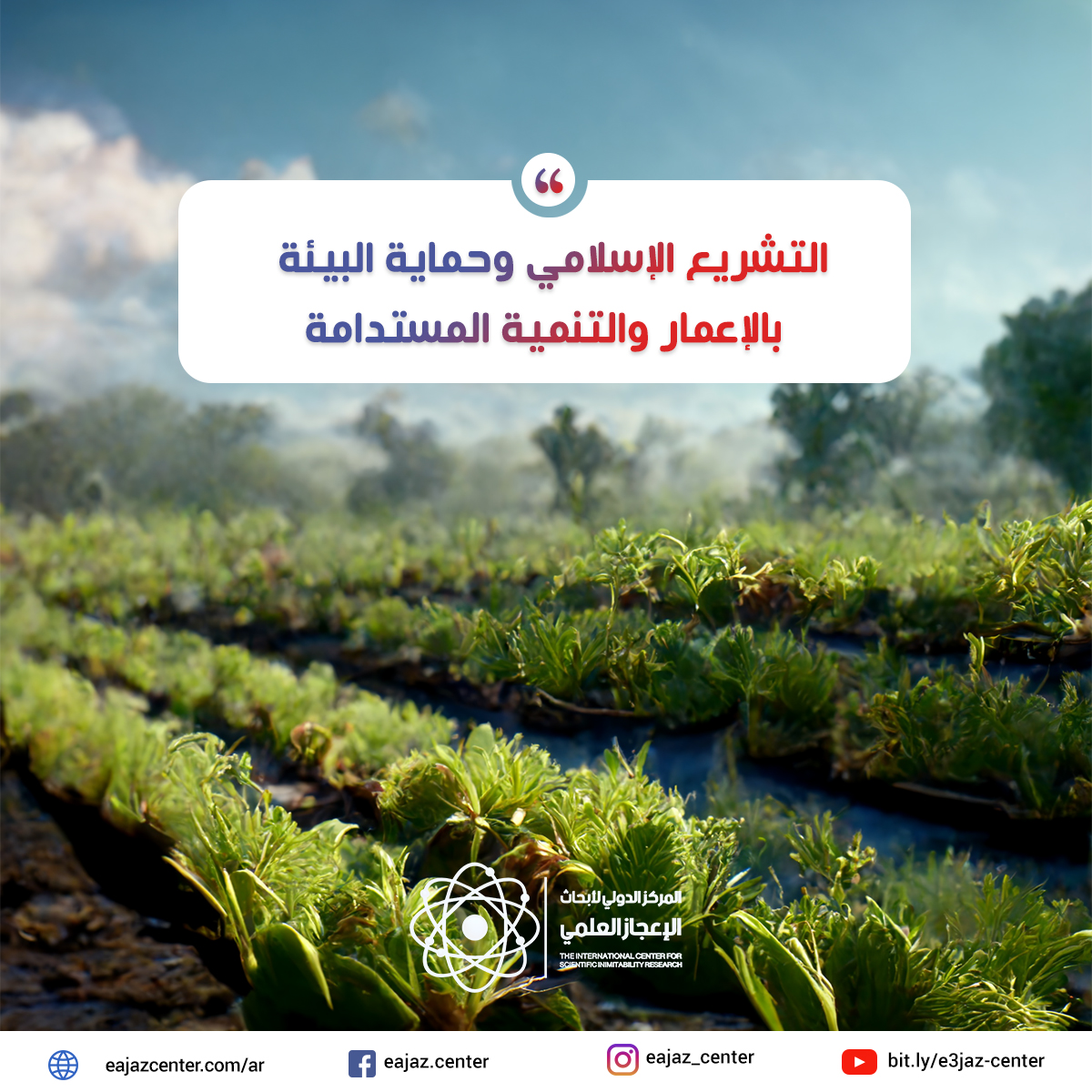 الاهتمام بالاقتصاد الأخضر ومحاربة التصحر : حيث أمر الإسلام بإحياء الموات وتعمير الأرض وإحيائها واستصلاحها وتشجيرها حتى لا تظل جرداء قاحلة، وحث على المزارعة حتى لا تظل الأرض بورا لا ينتفع بها أحد .كما جعلت الشريعة الإسلامية زرع الزروع وغرس الأشجار بابا عظيما من أبواب الأجر لا ينقطع ،قال : " ما من مسلم يغرس غرسا إلا كان ما أكل منه له صدقة ، وما سرق منه له صدقة ، وما أكل السبع منه فهو له صدقة، وما أكلت الطير منه فهو له صدقة ، ولا يرزؤه أحد إلا كان له صدقة "() .