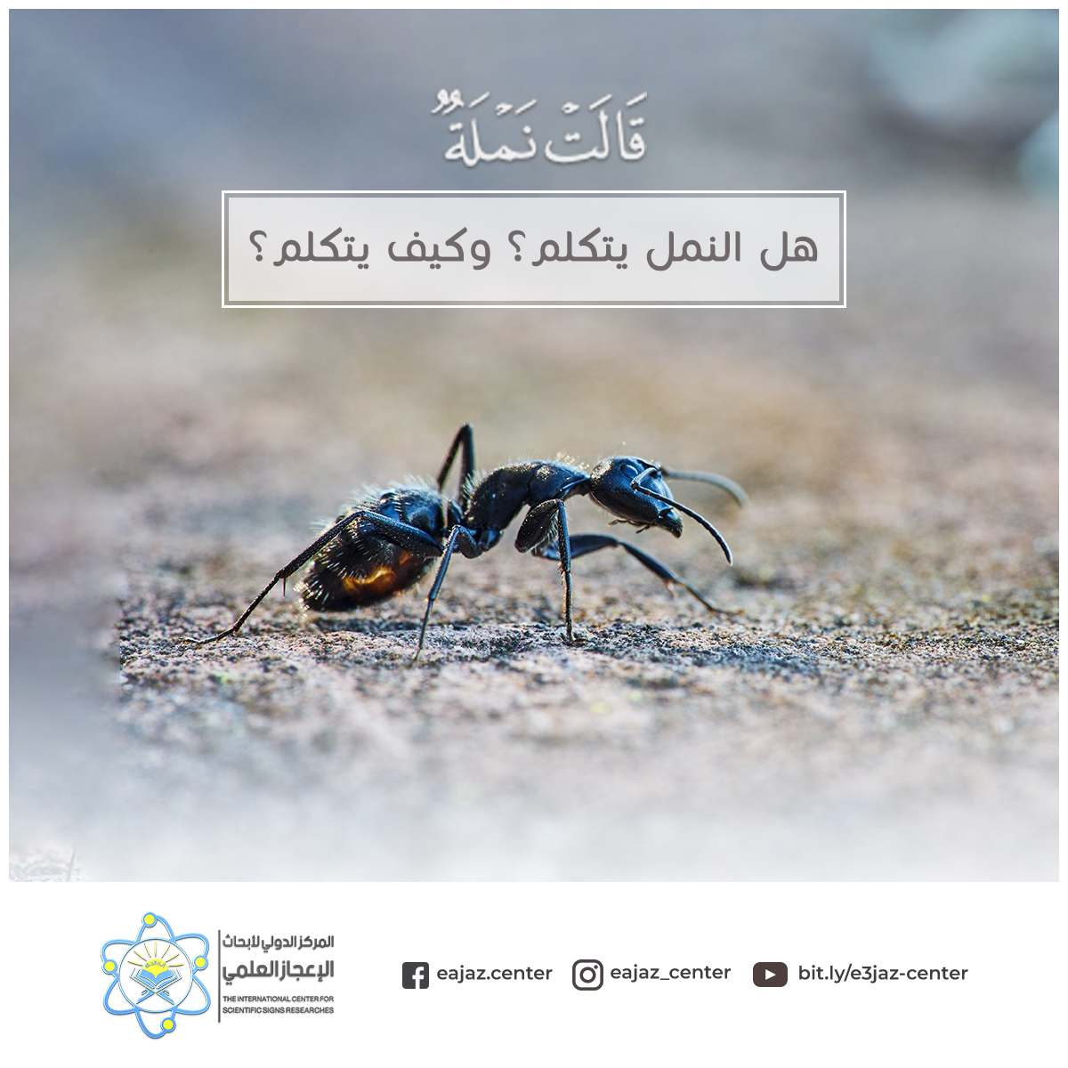 للجواب على السؤالين السابقين فلقد تم تصوير جسم النملة من جميع الزوايا بقوة تكبير حوالى 1000 مرة بواسطة معمل المجهر الإلكترونى الماسح، وكانت المفاجأة عندما تم أكتشاف تركيب عجيب على العقلتين الثالثة والرابعة من ظهر النملة ، حيث وجد على العقلة الثالثة شعرة طويلة تسمى الريشة تمتد فوق العقلة الرابعة، ووجد على العقلة الرابعة عضو مثلث الشكل ينقسم الى حوالى 100 خط منفصل تشبه الأوتار الموجودة على آلة القانون الموسيقية، و عندما تريد النملة أن تتكلم فإنها تحرك الريشة على الأوتار و تصدر الكلمات التى تريدها، لقد أشار القرآن الكريم الى كلام النمل منذ أكثر من 1400 عام، لأنه من عند الله سبحانه و تعالى أوحاه الى رسولنا الكريم – صلى الله عليه و سلم .