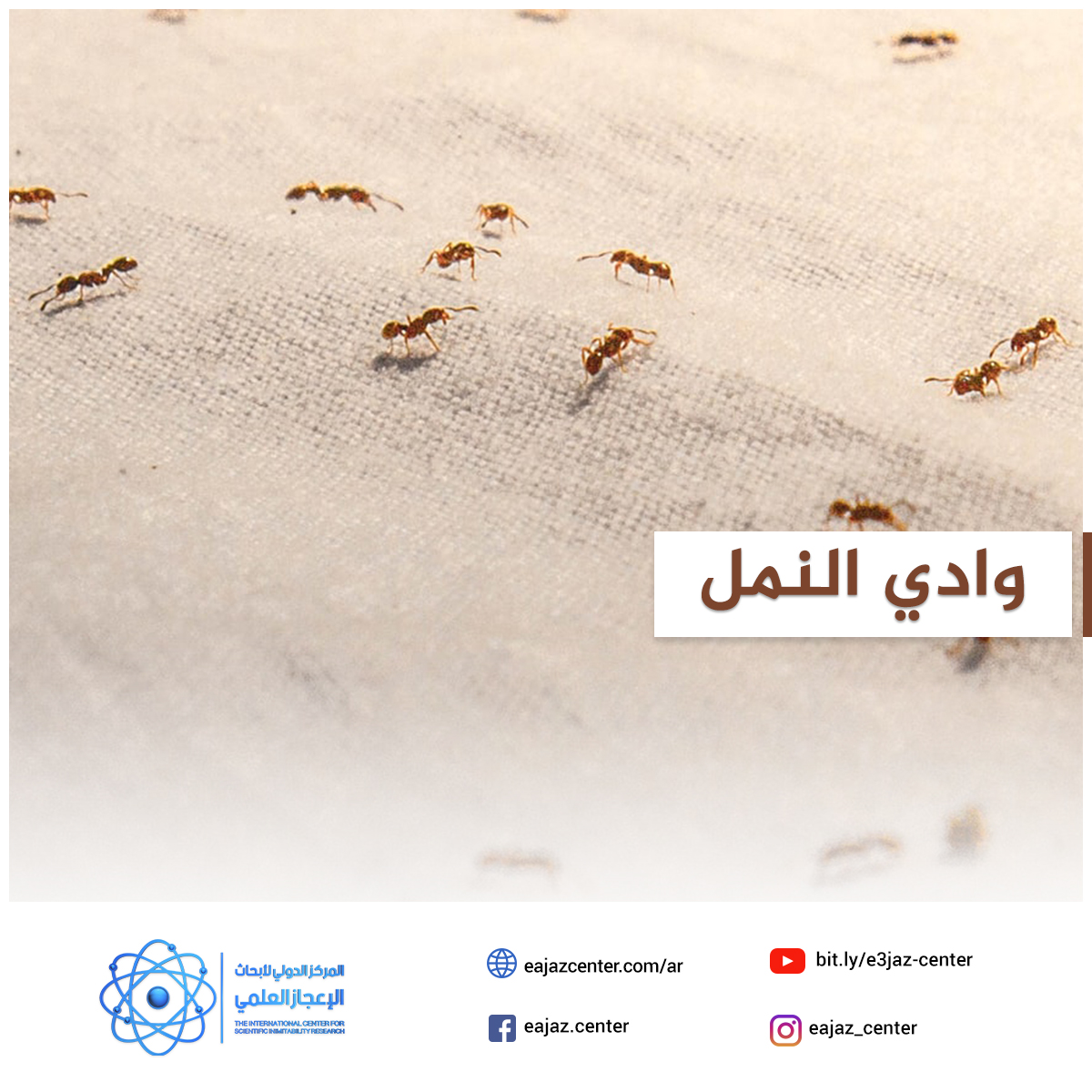 ان القرآن الكريم كان سباقا حيث ذكر مصطلح "وادى النمل" فى الآية القرآنية الكريمة، لينبه البشر الى ضخامة المساحات التى تشغلها أعشاش والمستعمرات العملاقة للنمل، والتى تعج بتلك الكائنات العجيبة والتى تصل فى بعضها إلى الملايين.